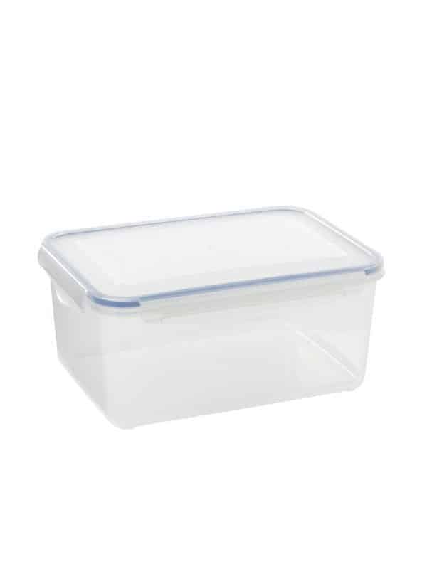 Opbevaringsboks rektangulær m/låg 4 liter.Mål: 261 x 185 x 113 mm. Funktion.Lufttæt opbevaringsboks med 4 klips og gummikant.Kan anvendes i mikroovn.Åben altid låget ved brug i mikroovn.Tåler frost.Tåler maskinopvask.