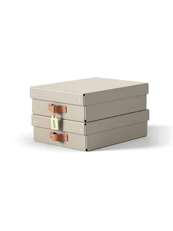 Leitz Puro opbevaringsboks med låg, medium, lav, 8 L, 100 % recirkuleret karton, pakke med 2 stk, beige