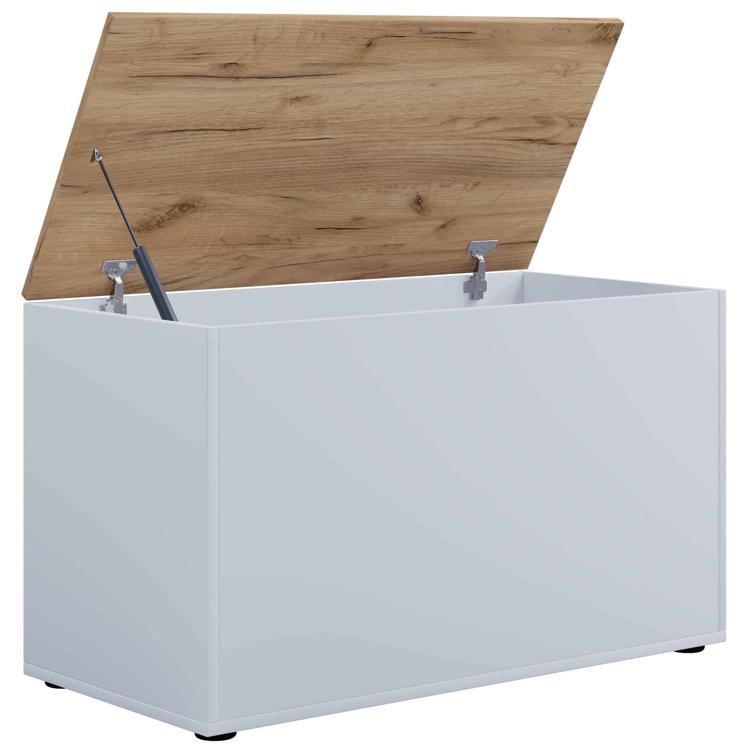 VCM NORDIC Bendola opbevaringskasse, m. låg, rektangulær – hvid/natur træ (82×44)