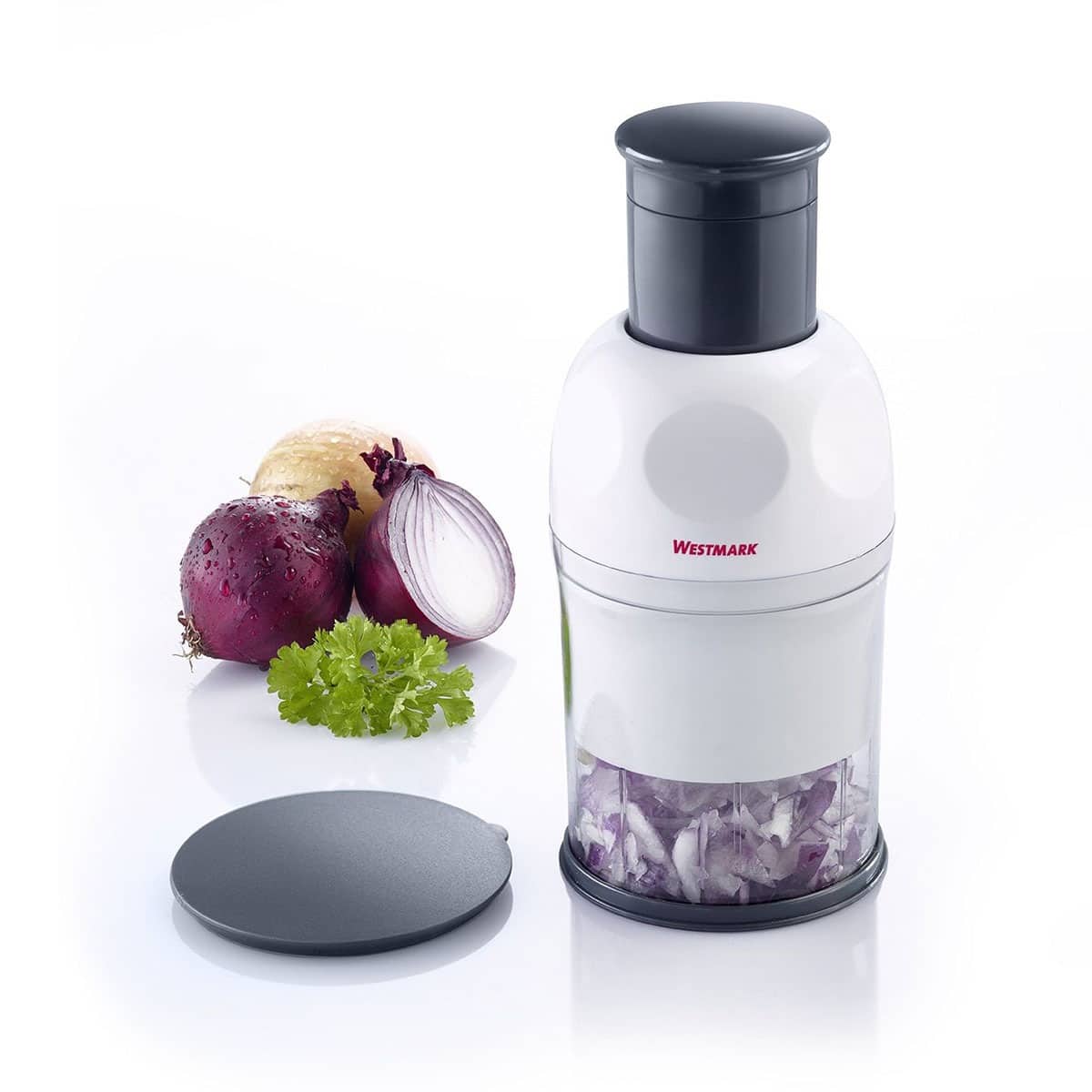 Denne kompakte minihakker fra Westmark gør det hurtigt og nemt at hakke løg, grøntsager, nødder og meget mere. Den klare beholder giver dig overblik under arbejdet, og med det medfølgende låg kan den nemt forvandles til en praktisk opbevaringsboks.